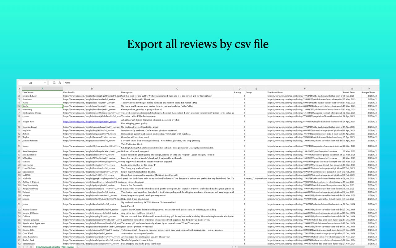 - Stay Consistent: Export new reviews monthly with Etsy Reviews Extractor to analyze buyer trends and update your product strategy, keeping your shop competitive.